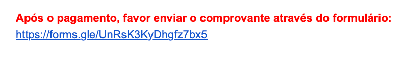 Nesse e-mail, você irá encontrar os dados para pagamento, seja via PIX ou o link do CARTÃO.